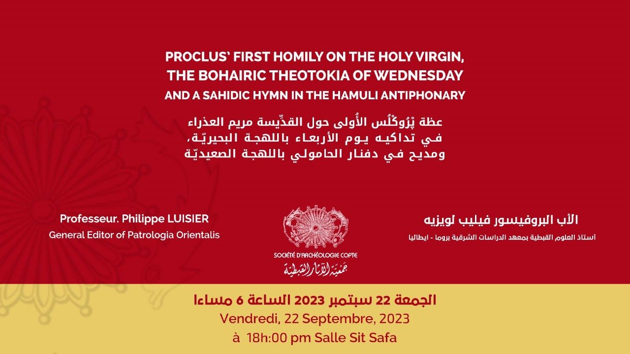 Proclus, archbishop of Cyzicus, pronounced a homily on the Theotokos in the presence Nestorius, probably at the end of 430 AD. References to it are found in two liturgical Coptic texts, the Wednesday Theotokia in Bohairic and the hymn number 143 of the Hamuli Antiphonary in Sahidic. We can analyse the translation of Greek concepts in both of the Coptic languages, with astonishing results.