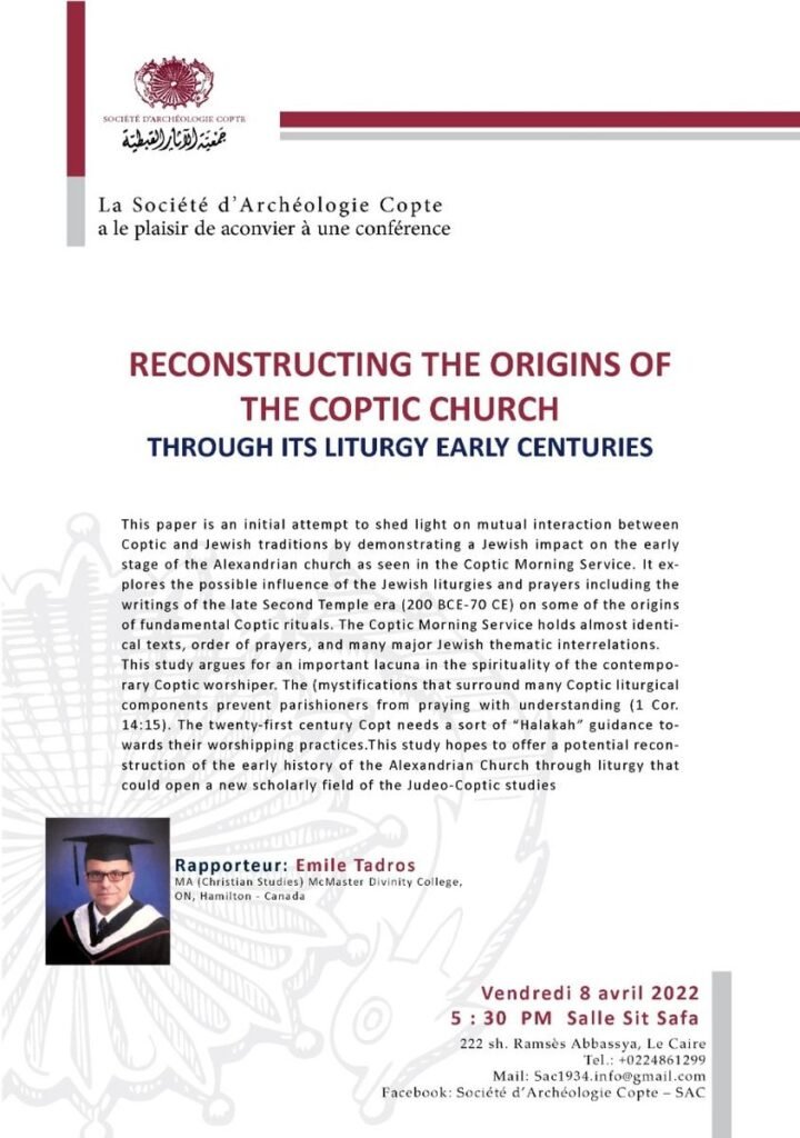 This paper is an initial attempt to shed light on mutual interaction between Coptic and Jewish traditions by demonstrating a Jewish impact on the early stage of the Alexandrian church as seen in the Coptic Morning Service. It explores the possible influence of the Jewish liturgies and prayers including the writings of the late Second Temple era (200 BCE-70 CE) on some of the origins of fundamental Coptic rituals. The Coptic Morning Service holds almost identical texts, order of prayers, and many major Jewish thematic interrelations. This study argues for an important lacuna in the spirituality of the contemporary Coptic worshiper, The (mystifications that surround many Coptic liturgical components prevent parishioners from praying with understanding (1 Cor. 14:15). The twenty-first century Copt needs a sort of “Halakah” guidance towards their worshipping practices. This study hopes to offer a potential reconstruction of the early history of the Alexandrian Church through liturgy that could open a new scholarly field of the Judeo-Coptic studies