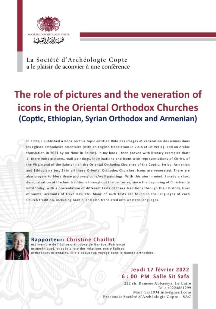 1) there exist pictures, wall paintings, illuminations and icons with representations of Christ, of the Virgin and of the Saints in all the Oriental Orthodox Churches of the Coptic, Syriac, Armenian and Ethiopian rites; 2) in all these Oriental Orthodox Churches, icons are venerated. There are also prayers to bless these pictures/icons/wall paintings. With this aim in mind, made a short demonstration of the four traditions throughout the centuries, since the beginning of Christianity until today, with a presentation of different texts of these traditions through their history, lives of Saints, accounts of travellers, etc. Many of such texts are found in the languages of each Church tradition, including Arabic, and also translated into western languages.